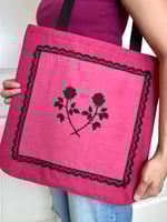 Please note: bag is made of medium weight cotton canvas & rose print is on a linen cotton which is prone to slight pilling (pictured)